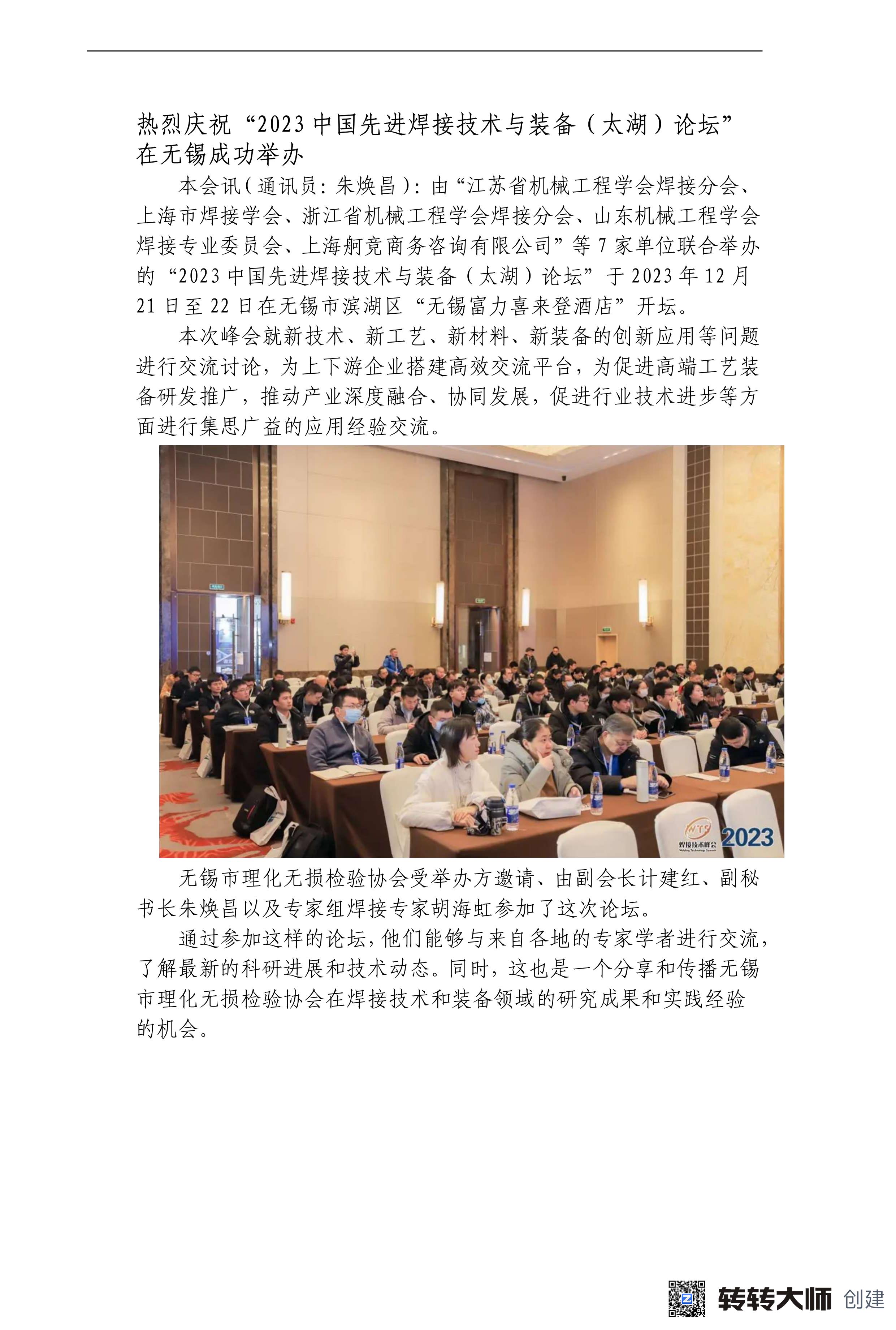 热烈庆祝“2023中国先进焊接技术与装备(太湖)论坛”