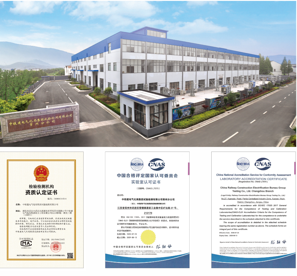 中铁建电气化局集团试验检测有限公司常州分公司前身为中铁建电气化局集团轨道交通器材有限公司测试中心,经历多年的高速发展,已构建起覆盖中国电气化铁路、城市轨道交通、通用工业材料领域等多行业的检测能力水平。