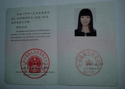 机械工业国家职业资格证书样本